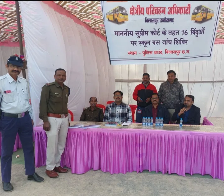 आज दिनांक 14.01.2024 को स्कूल बसों की जांच एवं उनके चालको/परिचालकों का स्वास्थ्य परीक्षण स्थानीय पुलिस स्टेडियम बिलासपुर में परिवहन विभाग एवं यातायात पुलिस तथा स्वास्थ्य विभाग के टीम के द्वारा किया गया। आज दिनांक 14.01.2024 को 208 स्कूल बसों की सुप्रीमकोर्ट के निर्देशानुसार 16 बिन्दुओं के आधार पर जांच की गई, जिसमें 171 स्कूल बसों निर्धारित मापदण्ड में सही पाया गया एवं 37 बस अनफिट पाया गया। कुल 04 स्कूल बसो में 10000 रूपये शमन शुल्क किया गया एवं 1 स्कूल बस में 23870 रु० टैक्स जमा कराया गया। कुल 37 बसो में निम्नलिखित कमी पायी गई परमिट-02, बिना फिटनेस-02, बिना सुरक्षा जाली-11, बिना रिफ्लेक्टर-06, तथा 16 स्कूल बसों में अग्निशमन यंत्र, एवं प्राथमिक उपचार पेटी किट में एक्सपायरी होना पाया गया जिसे 03 दिवस में दुरूस्त करने निर्देश दिये गये। स्वास्थ्य विभाग द्वारा सभी 208 वाहन चालकों का नेत्र परीक्षण एवं बी.पी. शुगर जांच किया गया जिसमे गैस्टो-12, बुखार-6, चर्मरोग-11, शुगर-16 बीमारी होना पाया गया। अंत में उपस्थित स्कूल के संचालकों एवं चालको / परिचालकों को सुप्रीम कोर्ट के निर्देशानुसार वाहन का संचालन करने की हिदायत श्री अनुभव शर्मा, आरटीओ बिलासपुर द्वारा दी गई तथा यह भी कहा गया कि कोई भी स्कूल बस संचालक यदि सुप्रीम कोर्ट के निर्देशानुसार वाहन का संचालन नहीं करते है तो उन पर मोटरयान अधिनियम के तहत् कड़ी कार्यवाही की जायेगी तथा जिन-जिन बसों में जो कमियां पाई गयी है वे 03 दिवस के अंदर उन कमियों को दूर करके कार्यालय को सूचित करें, साथ ही अभिभावकों/पालको से भी आग्रह किया है जिस बस में अपने बच्चों को स्कूल भेज रहे है यह सुरक्षा की दृष्टि से है कि नहीं यह ज्ञात रहे। परिवहन निरीक्षक श्री केके चौबे एवं श्री प्रशांत शर्मा, श्री रघुवीर सिंह ध्रुव द्वारा सुरक्षित वाहन चालन एवं बच्चों से नम्र व्यवहार करने अनुरोध किया गया। यातायात पुलिस से श्री संजय साहू, उप पुलिस अधीक्षक (यातायात) एवं श्री उमाशंकर, उप निरीक्षक द्वारा तेजगति में वाहन संचालन, एवं शराब या मद्यपान सेवन कर वाहन नहीं चलाने तथा कभी भी गलत साईड में वाहन नहीं चलाने एवं यातायात के नियमों का पालन करने हेतु हिदायत दी गई। जिन स्कूल संचालक द्वारा स्कूल बस शिविर में जांच हेतु नहीं लाया गया है उनके स्कूल में निरीक्षण किया जाकर नियमानुसार कार्यवाही की जावेगी। कार्यक्रम में परिवहन विभाग के टीम से श्री निशीकांत दुबे परिवहन उप निरीक्षक, श्री वेदराम साहू, श्री संतनदेव जोगी, श्री करण सोनी, श्री रामगोपाल यादव उपस्थित थे।
