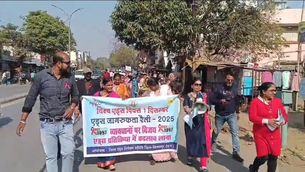 विश्व एड्स दिवस के अवसर पर बिलासपुर में एड्स पखवाड़ा के तहत जन-जागरूकता कार्यक्रमों की शुरुआत की गई। इस अभियान का उद्देश्य लोगों को एड्स के प्रति जागरूक करना और एचआईवी से पीड़ित व्यक्तियों के साथ किसी भी प्रकार के भेदभाव को समाप्त करने का संदेश देना है। 1 दिसंबर से 15 दिसंबर तक चलने वाले इस पखवाड़े के अंतर्गत शहर में जागरूकता रैली सहित कई कार्यक्रम आयोजित किए जा रहे हैं। बिलासपुर में विश्व एड्स दिवस के उपलक्ष्य में स्वास्थ्य विभाग द्वारा एड्स पखवाड़ा मनाया जा रहा है। इसी कड़ी में जिला चिकित्सा कार्यालय से महामाया चौक तक एक जागरूकता रैली निकाली गई। रैली में स्वास्थ्य विभाग के अधिकारी-कर्मचारी, मेडिकल स्टाफ, स्वयंसेवी संगठनों के प्रतिनिधि और बड़ी संख्या में आम नागरिक शामिल हुए।