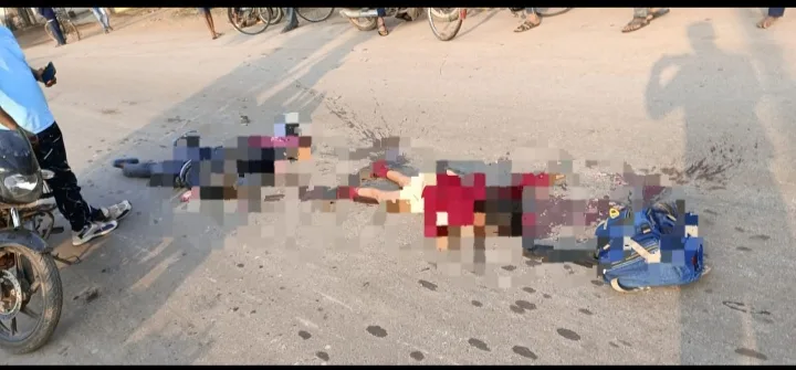बाइक सवार पिता और उसके दो बच्चों की मौके पर हुई दर्दनाक मौत