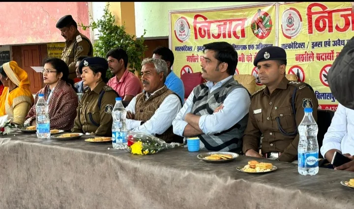 श्रीमान पुलिस अधीक्षक महोदय बिलासपुर संतोष कुमार सिंह (आई.पी.एस) के द्वारा नशे के विरुद्ध निजात अभियान के तहत जागरुकता अभियान चलाने हेतु निर्देशित किया गया है, जिसके परिपालन में अतिक्ति पुलिस अधीक्षक महोदया (ग्रामीण) श्रीमती अर्चना झा के मार्गदर्शन में थाना प्रभारी हिर्री पुलिस द्वारा ग्राम सकर्रा हायर सेकण्डरी स्कुल में आज दिनांक 19.12.2023 को आयोजित किया गया। कार्यकम के दौरान अतिरिक्त पुलिस अधीक्षक महोदया श्रीमति अर्चना झा द्वारा उपस्थित गणमान्य नागरिको एवं छात्र छात्राओ को नशे से दूर रहने एवं नशापान में लिप्त लोगो को नशे से निजात दिलाकर समाज के मुख्यधारा में लाने हेतु प्रेरित किये साथ ही साईबर काईम के बारे में सुक्ष्मता से जानकारी देकर साईबर अपराधियो के जाल में नहीं फसने की समझाईस दी गई। कार्यकम के दौरान नगर पुलिस अधीक्षक चकरभाठा श्री कृष्णा पटेल द्वारा नशा के प्रकार एवं उसके दुष्प्रभाव पर प्रकाश डालते हुये नशे से दूर रहकर स्वस्थ परिवार एवं समाज का निर्माण करने का अवहान किया गया। इसी प्रकार डां घनश्याम यादव जो सकर्रा स्कुल के पूर्व छात्र हैं, ने नशा से किस प्रकार शरीर के अलग अलग अंगो पर दुष्प्रभाव पडता है की जानकारी देते हुये मोबाईल के अत्यधीक प्रयोग को नशा से जोड़कर उससे बचने एवं सकारात्मक कार्यों हेतु उपयोग में लाने हिदायत दिये। कार्यक्रम के दौरान उपस्थित शिक्षक जनप्रति निधीगण एवं छात्र छात्राओ में जबरदस्त उत्साह देखा गया। सभी लोग नशा पान नही करने एवं नशा मुक्त समाज बनाने की सकल्प लिये। इस संबंध में समय समय पर निजात अभियान से संबंधित नारे लगवाये गये।