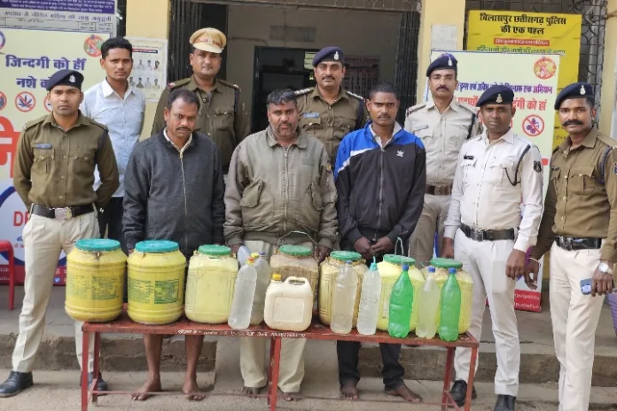 ⏩⏩ मामले का संक्षिप्त विवरण इस प्रकार है कि श्रीमान पुलिस अधीक्षक महोदय बिलासपुर श्री संतोष कुमार सिंह द्वारा जिले में अवैध शराब, गांजा एवं नशीली दवाई के विरुद्ध विशेष अभियान (निजात) चलाकर अधिक-से अधिक कार्यवाही करने हेतु आदेशित किया गया था, जिसके परिपालन में दिनांक 11.01.2024 को थाना कोनी की सयुक्त पुलिस टीम बनाकर थाना कोनी क्षेत्रों में सतत् निगाह रखी गई, मुखबिर सूचना के आधार पर हमराह स्टाफ एवं गवाहों के साथ ग्राम जलसों में दबिश देकर माधव सूर्यवंशी के कब्जे से 25 लीटर लक्ष्मी सूर्यवंशी के कब्जे से 30 लीटर एवम अजय वर्मा के कब्जे से 28 लीटर अवैध रूप से कच्ची महुआ शराब उपरोक्त आरोपियो से कुल जुमला 83 लीटर कच्ची महुआ शराब कीमती 24,900 रुपए पृथक-पृथक जप्त कर आरोपियों के विरुद्ध पृथक-पृथक 03 प्रकरण आबकारी अधिनियम धारा- 34(2) के तहत कार्यवाही कर गिरफ्तार कर न्यायिक रिमाण्ड पर भेजा गया है।