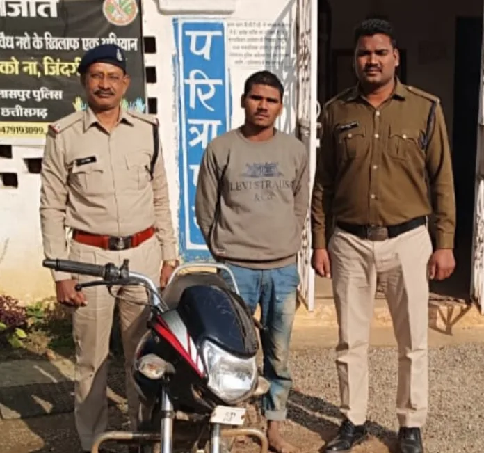 मामले का संक्षिप्त विवरण इस प्रकार हैं कि प्रार्थी सुरेश कुमार साहू दिनांक 25.01. 2024 को थाना उपस्थित आकर रिपोर्ट दर्ज कराया कि दिनांक 24.01.2024 को रात्रि करीबन 10:00 बजे मेरे मोटर सायकल कमांक सीजी 11 एपी 4246 एचएफ डिलक्स लाल काला रंग किमती 40000 रूपये चिल्हाटी सब स्टेशन के स्टोर रूम के अंदर रखे मोटर सायकल को कोई व्यक्ति चोरी कर ले गया है प्रार्थी के रिपोर्ट अपराध पंजीबद्ध कर विवेचना में लिया गया मामले को देखते हुये दिनाक 25.01.2024 को जरिये मुखबीर से सूचना मिला की सुरेश कुमार पिता बलराम गोपाल जाति देवार उम्र 20 साल निवासी पचपेडी बाजार के पास थाना पचपेडी कि सूचना पर पचपेडी पुलिस टीम द्वारा संदेही के सकुनत पर दबिश देकर बारीकी से पूछताछ किया जो दिनाक घटना समय को जुर्म करना स्वीकर किया गया आरोपी के कब्जे मोटर सायकल एचएफ डिलक्स को बरामद कर जप्त किया गया। आरोपी को आज दिनांक 25.01.2024 को विधिवत गिरफ्तार कर न्यायिक रिमाण्ड पर भेजा गया है।