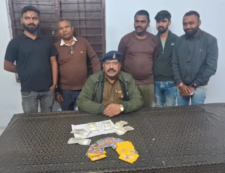 मामले का संक्षिप्त विवरण इस प्रकार से है कि श्रीमान पुलिस अधीक्षक महोदय (IPS) श्री संतोष कुमार सिंह के निर्देशन पर तथा श्रीमान अतिरिक्त पुलिस अधीक्षक महोदया श्रीमती अर्चना झा (ग्रामीण) एवं नगर पुलिस अधीक्षक महोदय श्री कृष्ण कुमार पटेल चकरभाठा के विशेष मार्ग दर्शन पर लगातार क्षेत्र में अवैध शराब व नशीले पदार्थ के ऊपर कार्यवाही की जा रही है इसी तारतम्य में दिनांक 20.01.2024 को मुखबिर से सूचना मिला कि ग्राम झलफ़ा आम जगह पर कुछ लोग जुआ खेल रहे हैं कि सूचना पर थाना प्रभारी हिर्री निरीक्षक श्री उमेश कुमार साहू के नेतृत्व में थाना हिर्री के टीम द्वारा ग्राम झलफ़ा में रेड कार्यवाही किया गया जिसमें 1 हरीराम पिता भानू राम यादव 2 घनश्याम साहू पिता परमेश्वर 3 गणेश राम पिता अघोरी राम 4 महाराजा साहू पिता सहदेव 5 राजा साहू पिता सहदेव साहू को घेरा बन्दी कर पकड़ा गया कुछ जुआड़ियान पुलिस को देख कर भाग गए आरोपियो का कृत्य अपराध धारा 3(2) छ0ग0 जुआ प्रतिषेध अधिनियम का पाये जाने से फड़ से 3000 रुपये एवं 52 पत्ती ताश एक बोरी फट्टी समक्ष जप्त कर आरोपियो के विरुद्ध विधिवत कार्यवाही किया गया