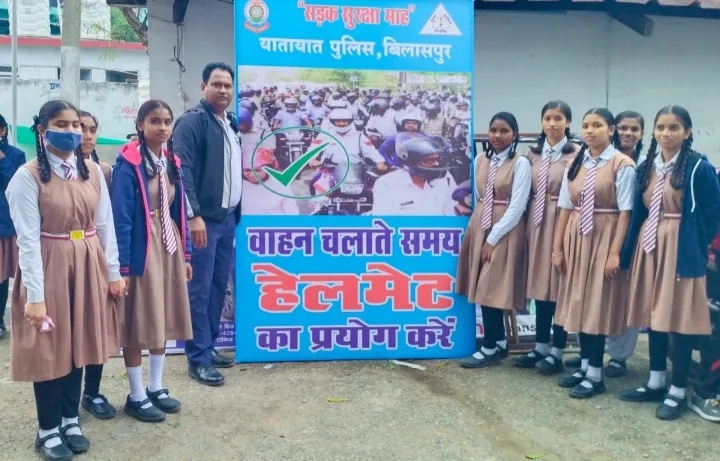 सड़क सुरक्षा माह 2024 के दौरान प्रतिदिन यातायात पुलिस बिलासपुर के द्वारा विभिन्न प्रकार के यातायात जन जागरूकता कार्यक्रम आयोजित किया जा रहे हैं।