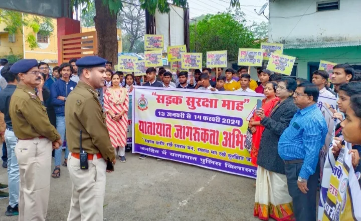 सड़क सुरक्षा माह 2024 आयोजन के 9वे दिन छात्र-छात्राओं के द्वारा निकली गई, “विशाल पैदल रैली”