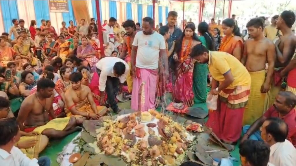 देवी के सामने आसन में दो क्विंटल से अधिक चावल की ढेर लगाई गई, जिसमें विविध प्रकार के दक्षिण भारतीय व्यंजन मिश्रित कर ढेर में कपूर प्रज्वलित की गई, तो वहीं यजमान परिवार द्वारा विधिवत पूजा कर यह भोग देवी को अर्पित किया गया।इस अवसर पर बड़ी संख्या में श्रद्धालु शामिल हुए, जो इस पल के साक्षी बने। सभी ने बताया कि पिछले 10 दिनों से आयोजन का हिस्सा बनने के बाद अब देवी की विदाई से सब का मन व्यथित है। हर वर्ष की भांति इस वर्ष भी देवी को महाकुंभम का भोग अर्पित करने के बाद यहां समिति द्वारा विशाल भंडारे का आयोजन किया गया जिसमें शामिल होकर श्रद्धालुओं ने प्रसाद ग्रहण किया।