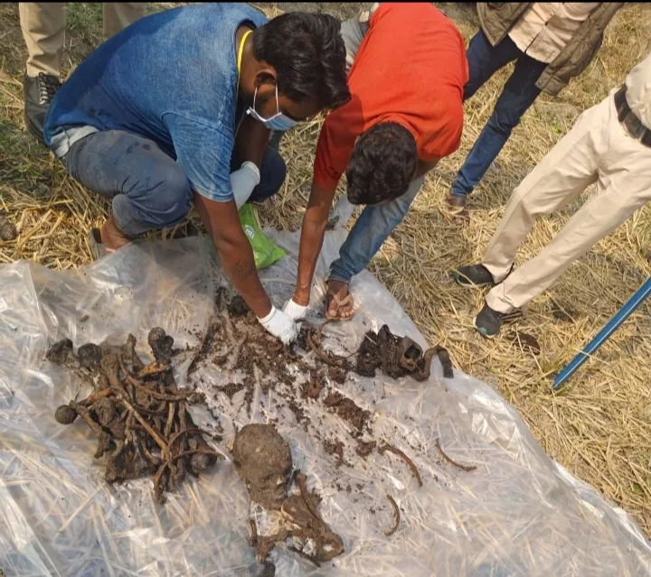विवरण- मृतक विकाश कैवर्त का गुम इंसान पुलिस सहायता केंद्र मल्हार में दर्ज था।मामले की गंभीरता को देखते हुए श्रीमान पुलिस अधीक्षक संतोष सिंह द्वारा गुम इंसान की पता तलाश करने हेतु निर्देशित किया गया था।उक्त निर्देशो का पालन करते हुए अतिरिक्त पुलिस अधीक्षक महोदया श्रीमती अर्चना झा एवम उप पुलिस अधीक्षक मुख्यालय उदयन बेहार के कुशल नेतृत्व में गुम बालक की पता तलाश की जा रही थी। इसी तारतम्य में दिनांक 08.01.2024 को प्रार्थी ईश्वर कैवर्त ने रिपोर्ट दर्ज कराया कि दिनाक 12.11.2020 की रात्रि करीब 21:00 बजे इसका लडका विकास कैवर्त उम्र 19 साल घर से निकला था जो घर वापस नही आया तो दिनांक 23.11.2020 का चौकी मल्हार में इसके लडके का गुमशुदगी रिपोर्ट दर्ज कराया था, माह अक्टुबर 2023 में प्रार्थी को जानकारी मिली कि इसके लडके विकास कैवर्त की अजय भानू एवं उनके तीन दोस्तो ने मिलकर हत्या कर उसकी लाश को हथनी तालाब के पास खेत मे गाड दिये है। तब इसकी सूचना मै चौकी मल्हार में दिया जिस पर उनके बताएनुसार उक्त संदेहियों से पूछताछ किये जाने पर घटना कारित करना स्वीकार करने पर उनकी निशानदेही पर रामजी पाटले की खेत को आज दिनांक 08.01.2024 तहसीलदार मस्तुरी के उपस्थिति में जेसीबी वाहन से खुदाई कराने से एक मानव कंकाल बरामद हुआ, जिसके कपडे, कडा, बेल्ट को देखकर प्रार्थी द्वारा विकास कैवर्त का शव होना बताया गया। आरोपी अजय भानू एवं उसके तीन अपचारी दोस्त ने मिलकर हत्या कर रामजी पाटले के खेत मे गाडे थे। प्रार्थी कि रिपोर्ट पर धारा सदर का अपराध पंजीबद्ध कर विवेचना में लिया गया है। तीनो संदेहियों के निशानदेही पर मृतक विकाश कैवर्त का मानव कंकाल बरामद किया गया है, जिसका बरामदगी पंचनामा एवं मृतक विकाश कैवर्त के शव की पहचान पंचनामा तैयार किया गया है। मानव कंकाल का पोस्ट मार्टम सिम्स बिलासपुर से कराया गया है। पीएम रिपोर्ट अप्राप्त है। मामले के अन्य आरोपी अजय भानू पिता उमेद मैना वर्तमान में अन्य हत्या के प्रकरण में बिलासपुर जिला जेल में निरूद्ध है। प्रकरण में तीन अपचारी बालक के द्वारा आरोपी अजय भानु के साथ मिलकर मृतक विकाश कैवर्त की हत्या कर उसकी लाश को छिपाने के उद्देश्य से खेत मे गाडकर रखने, उक्त तीनों अपचारी बालकों की निशान देही पर मृतक विकाश कैवर्त के शव को बरामद किया गया है। तीनो अपचारी बालको के द्वारा धारा सदर का अपराध करना सबूत पाये जाने पर दिनांक 08.01.2024 के 21:00, 21:10, 21:30 बजे विधिवत् गिरफ्तार कर सूचना परिजनों को दिया गया है। मामले के अन्य आरोपी अजय भानू की गिरफ्तारी करना शेष है । तीनो अपचारी बालको को किशोर न्याय बोर्ड के समक्ष उपस्थित कराया गया जहां से उन्हें सम्प्रेषण गृह भेज दिया गया है।उक्त प्रकरण में थाना प्रभारी रविन्द्र अनन्त पुलिस सहायता के