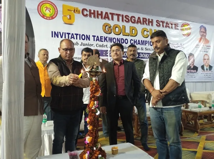 5वी छत्तीसगढ़ राज्य स्तरीय स्वर्ण कप ताइक्वांडो प्रतियोगिता का विधिवत उद्घाटन हुआ..
