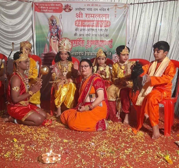 500 वर्षों बाद आज राम का दिन आया है हर तरफ केवल हर्ष उल्लास और राम जी की जय जयकार ही गूंज रही है इसी शुभ अवसर पर जेपी बिहार कॉलोनी में अक्षत कलश मीनू दुबे जी के स्थापित किया गया और आज शाम 4:00 बजे से सुंदरकांड हनुमान चालीसा और भजन के साथ आरती और छोटे-छोटे बच्चों के द्वारा राम दरबार बनाया गया बच्चों ने बढ़-चढ़कर हिस्सा लिया राम लक्ष्मण भरत शत्रुघ्न सीता हनुमान वशिष्ठ इस तरह बच्चों ने भूमिका निभाई और सभी बहनों ने बड़ी श्रद्धा के साथ कार्यक्रम को संपन्न किया और उसके पश्चात जेपी बिहार में भंडारा का आयोजन किया गया सभी जेपी विहार निवासियों को जय जय श्री राम सुषमा गुप्ता सुमन सोनी कविता महाडिक शशि चंदा गवही जेपी बिहार की सभी बहनों ने बढ़ चढ़कर उसे कार्यक्रम में भाग लिया और उत्साह के साथ इस कार्यक्रम को संपन्न किया सभी मीनू दुबे सभी बहनों का दिल से आभार प्रकट करती है कि सबके मन में एक ही नाम एक ही नारा जय श्री राम जय श्री राम
