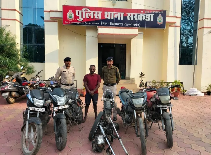 मामले का संक्षिप्त विवरण इस प्रकार है कि श्रीमान् पुलिस अधीक्षक महोदय बिलासपुर श्री संतोष कुमार सिंह (भापुसे) द्वारा पूर्व में थाना प्रभारियों की मीटिंग लेकर जिले में हो रही लगातार मोटर सायकल चोरियों पर अंकुश लगाने एवं अवैध करोबार करने वालों के विरूद्ध प्रभावी कार्यवाही करने निर्देशित किया गया है, जिसके परिपालन में क्षेत्र में हो रहे चोरी के रोकथाम तथा आरोपियों के धरपकड़ हेतु अतिरिक्त पुलिस अधीक्षक महोदय बिलासपुर श्री राजेन्द्र जायसवाल एवं सी.एस.पी. (सरकडा) श्रीमति पूजा कुमार के मार्ग दर्शन एवं थाना प्रभारी सरकंडा निरीक्षक जय प्रकाश गुप्ता के निर्देशन में थाना सरकण्डा तथा ए.सी.सी.यू के साथ संयुक्त टीम तैयार कर पतासाजी किया जा रहा था कि दिनाक 29. 01.2024 को मुखबीर से सूचना मिला कि एक व्यक्ति मोटर सायकल के कबाड़ को बेचने के फिराक में घूम रहा है, उक्त सूचना पर संयुक्त टीम द्वारा तत्काल तस्दीक करते हुये संदेही को घेराबंदी कर पकड़ा गया जिससे नाम पता पूछने पर अपना नाम छोटू उर्फ राजराव इंगोले निवासी फजलबाड़ा सिटी कोतवाली का रहने वाला बताया, जिससे पूछताछ करने पर चांटीडीह सोनी धर्मशाला गली से एक स्प्लेण्डर प्रो मोटर सायकल चोरी करना एवं उसके चेचिस एवं पार्ट्स को अलग-अलग कर कबाड़ में बेचने हेतु रखना तथा जिले के अलग-अलग स्थानों से 4 अन्य मोटर सायकल चोरी करना बताया, जो कबाड़ किये गये मोटर सायकल थाना सरकण्डा के अप. क. 144/2024 धारा 379 भादवि का मशरूका होना पाया गया, जिससे आरोपी के निशानदेही पर उक्त प्रकरण के मोटर सायकल सहित 05 नग मोटर सायकल जुमला किमती 2 लाख रूपये को बरामद किया गया एवं आरोपी को विधिवत् गिरफ्तार कर रिमाण्ड पर माननीय न्यायालय पेश किया गया।