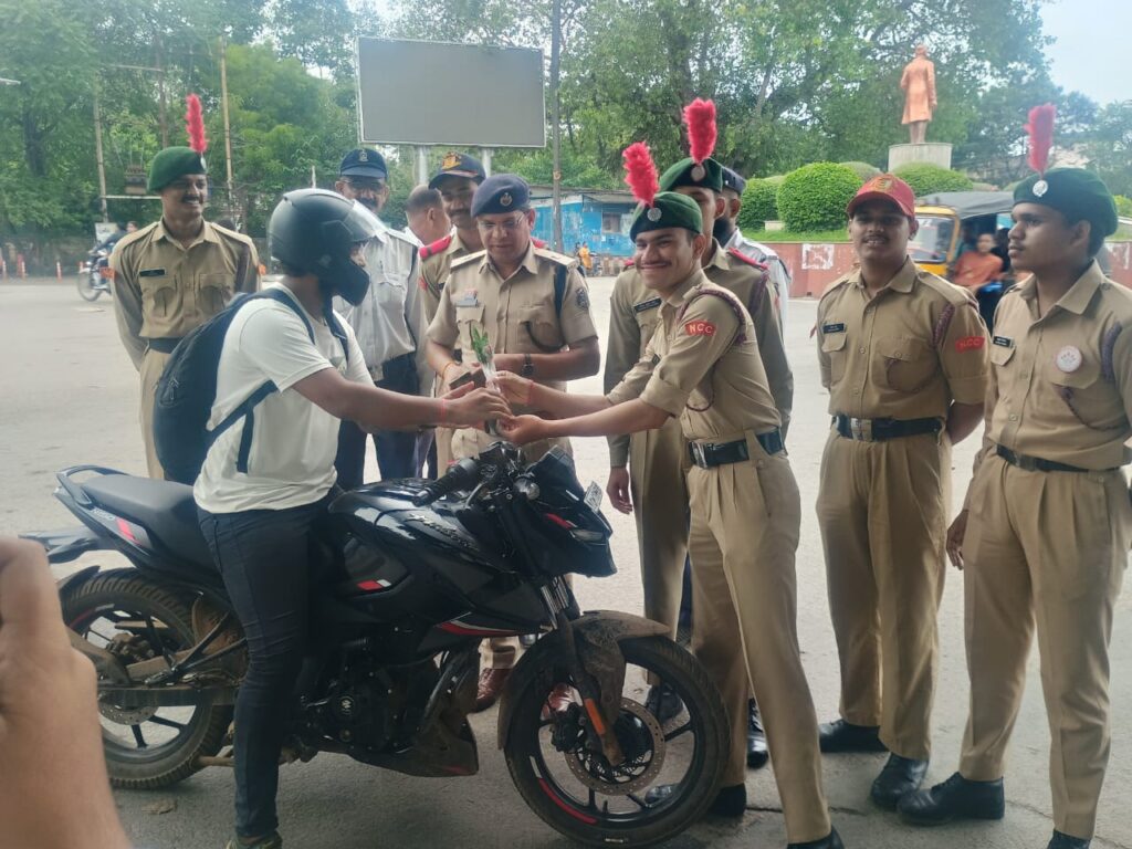 NCC कैडेट्स ने शहर में आबकारी आरक्षक की परीक्षा के लिए आए 35,000 से ज्यादा परीक्षार्थियों और उनके परिजनों की वापसी के दौरान ट्रैफिक व्यवस्था संभालने में यातायात पुलिस का सहयोग किया। यह अभ्यास युवाओं को कानून, सेवा और सामाजिक जिम्मेदारी की प्रत्यक्ष सीख देने का एक सशक्त उदाहरण रहा।